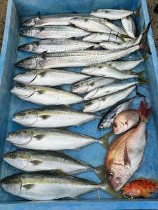 午後から荒れる予報でしたので早出の早上がりのつもりで出船しました。でも予報が良い方に変わり結局荒れず普通に出来ました。メジロにハマチにサワラがポツポツヒットしてきましたが鰤は釣れませんでした。明日から水曜日まで荒れそうです。木曜日は出られそうです。