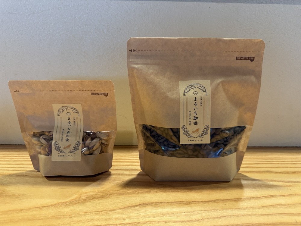 自家焙煎したコーヒー豆とミックスナッツの販売をしています