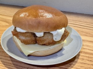 サワラでフィレオフィッシュ作ってみました。めちゃくちゃ美味しい。バンズはファミチキバンズでタルタルソース追加しました。……