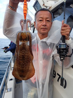 釣果はアオリイカを32ハイ、コウイカを3ハイ。